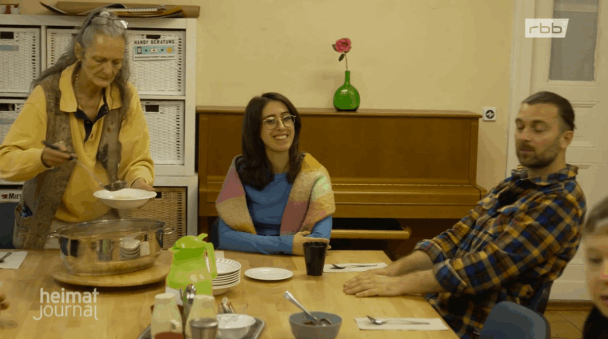 Das rbb Heimatjournal hat vergangene Woche im Nachbarschaftstreff gedreht! Aufregend war es: in der Küche wurden Messer und Feuerlöscher geschwungen, allen tränten die Augen vom Zwiebelduft – aber am Ende waren alle glücklich und zufrieden im Suppenkoma.